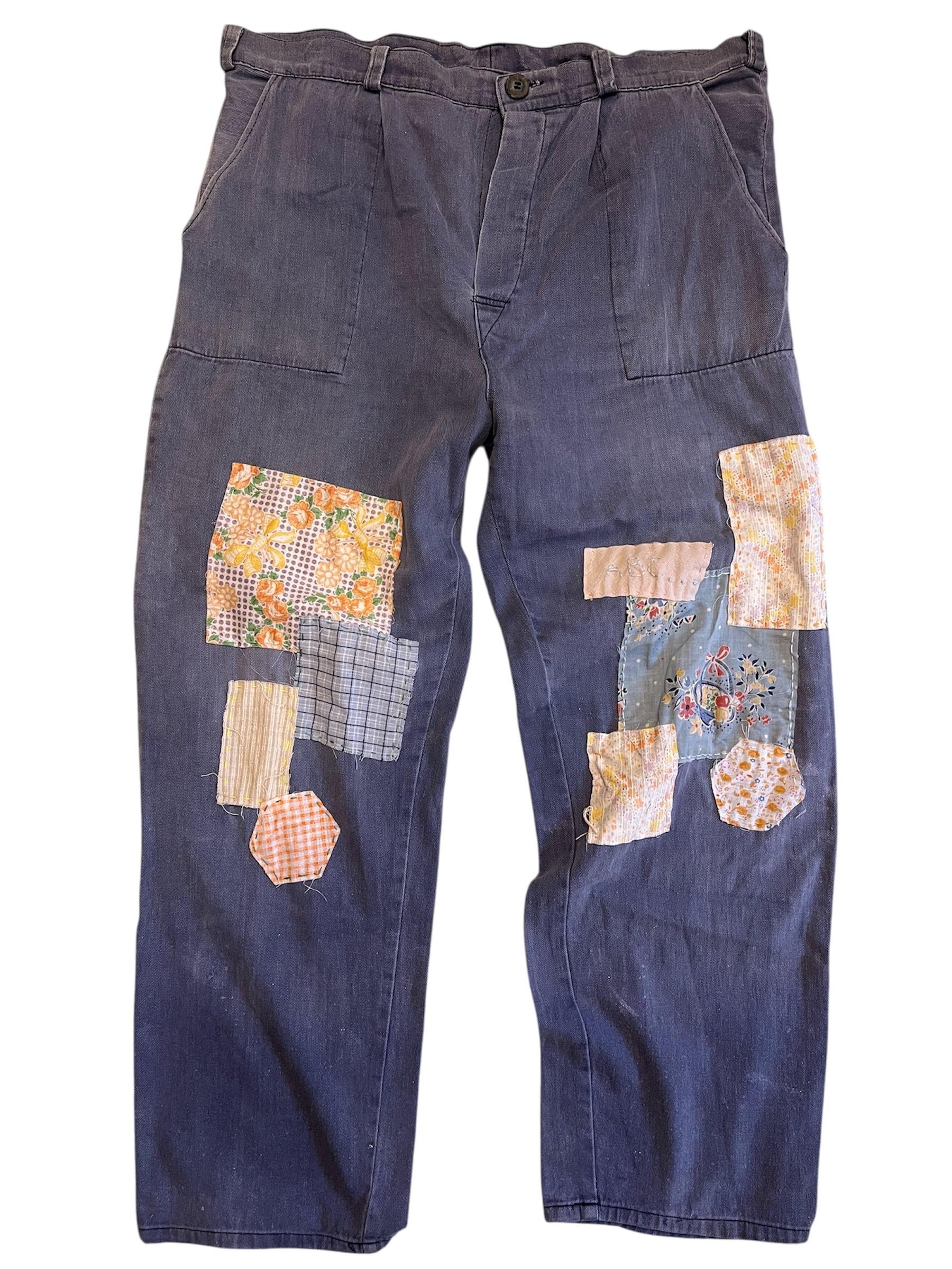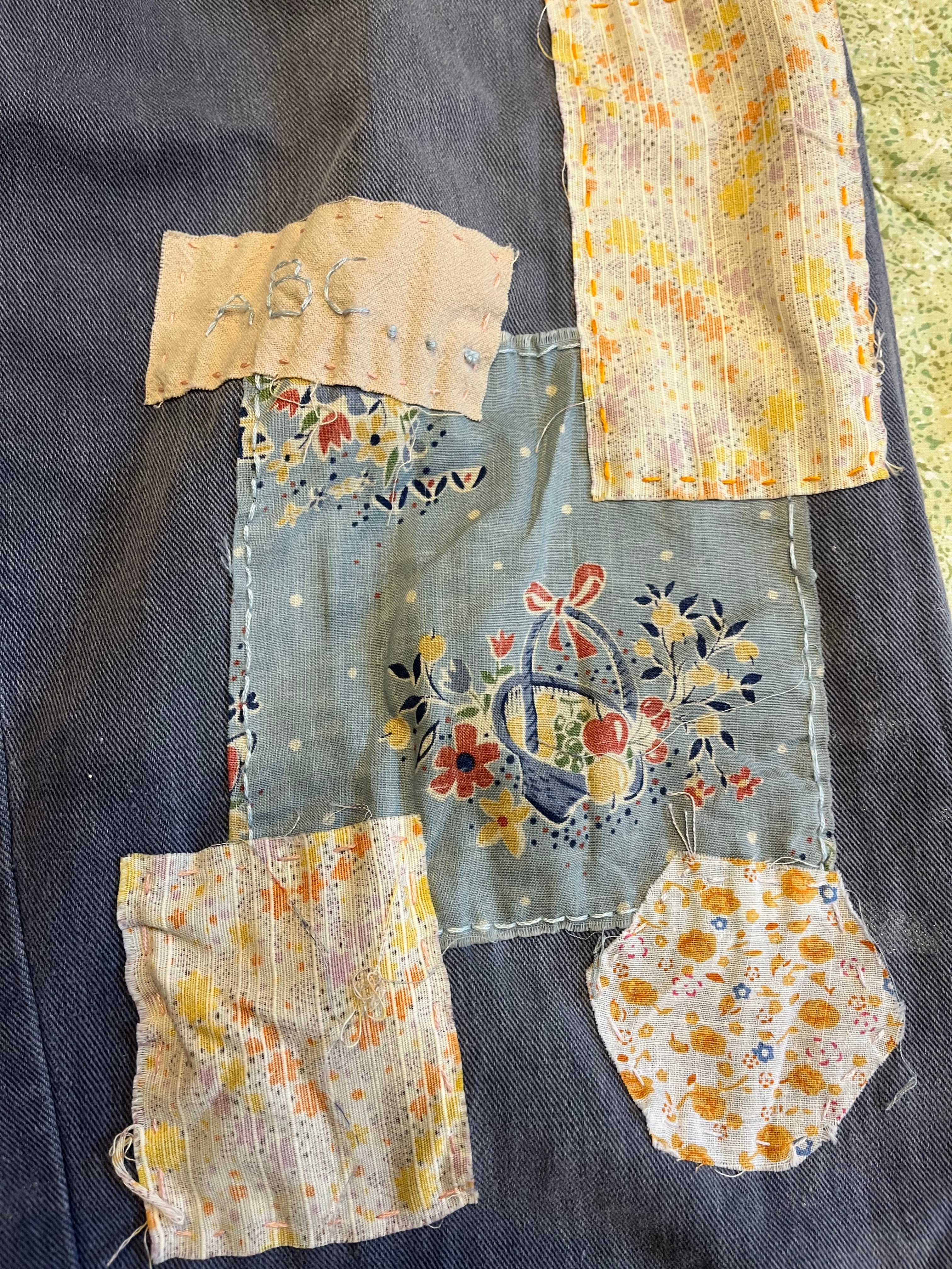 手縫いパッチワークのリメイクです。優しく洗っていただけると安心です。